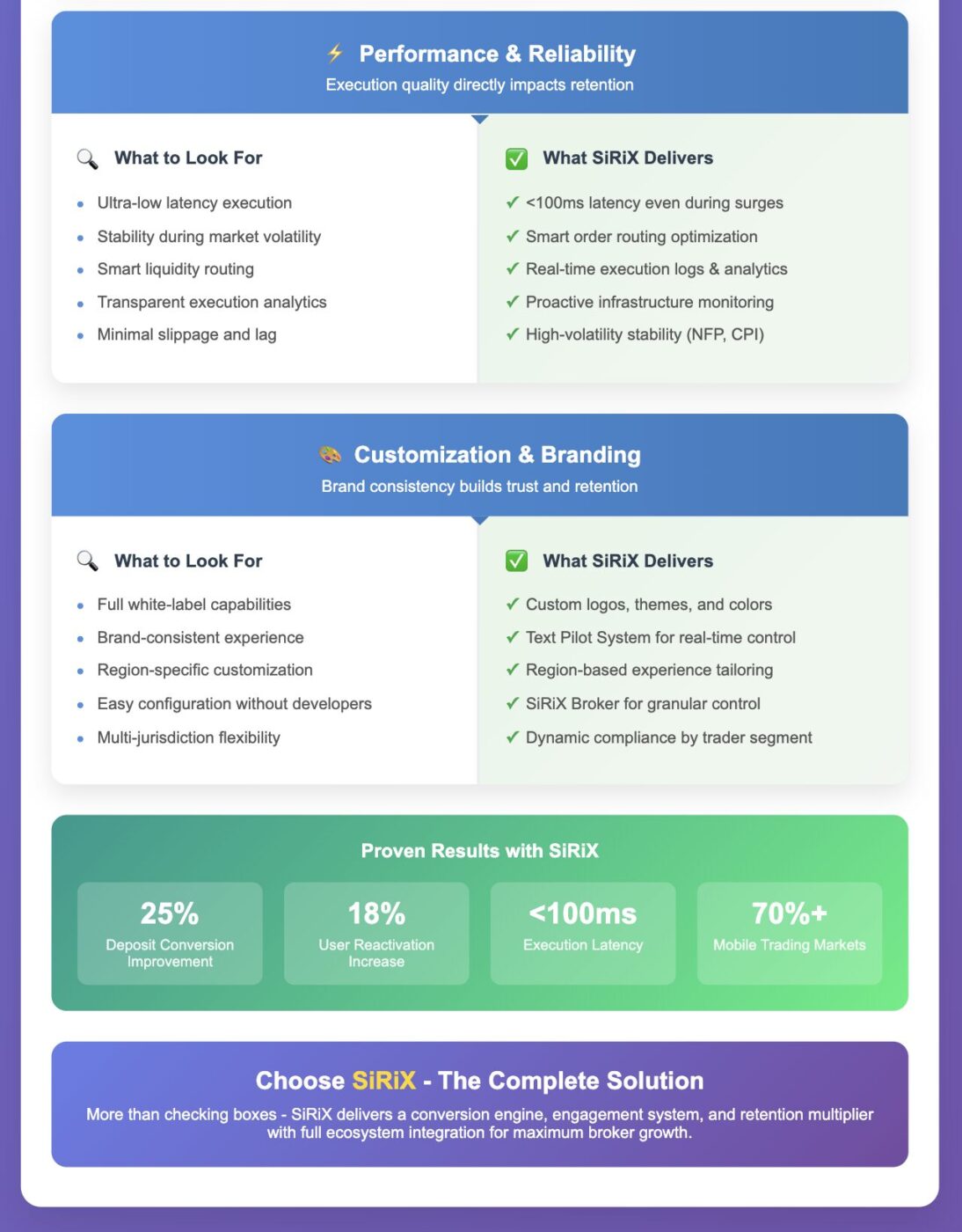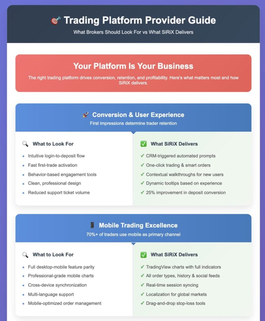 SiRiX transforms the trading platform into a high-converting digital environment by embedding performance-driven UX and automation hooks that convert passive leads into active traders.
