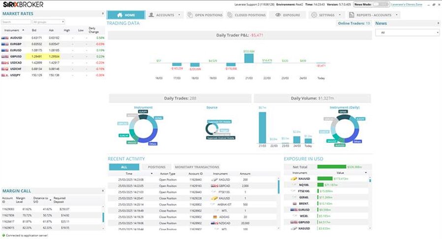 - SiRiX Broker enables brokers to configure payouts, regional flows, leverage settings, and fee logic in real time