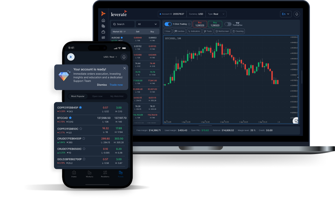 Launch your brokerage with MT5 or MT4. Backed by Leverate’s proven infrastructure.
