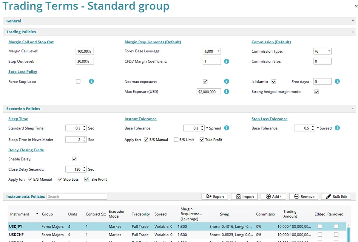 Build and apply complex trading rules, configure by group, region, or symbol, and manage it all in one place.