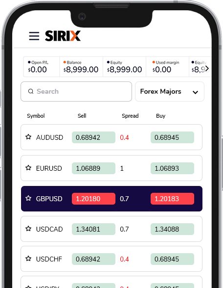 SIRIX offre une nouvelle expérience de trading d’application mobile avec des fonctionnalités faciles à utiliser, notamment :