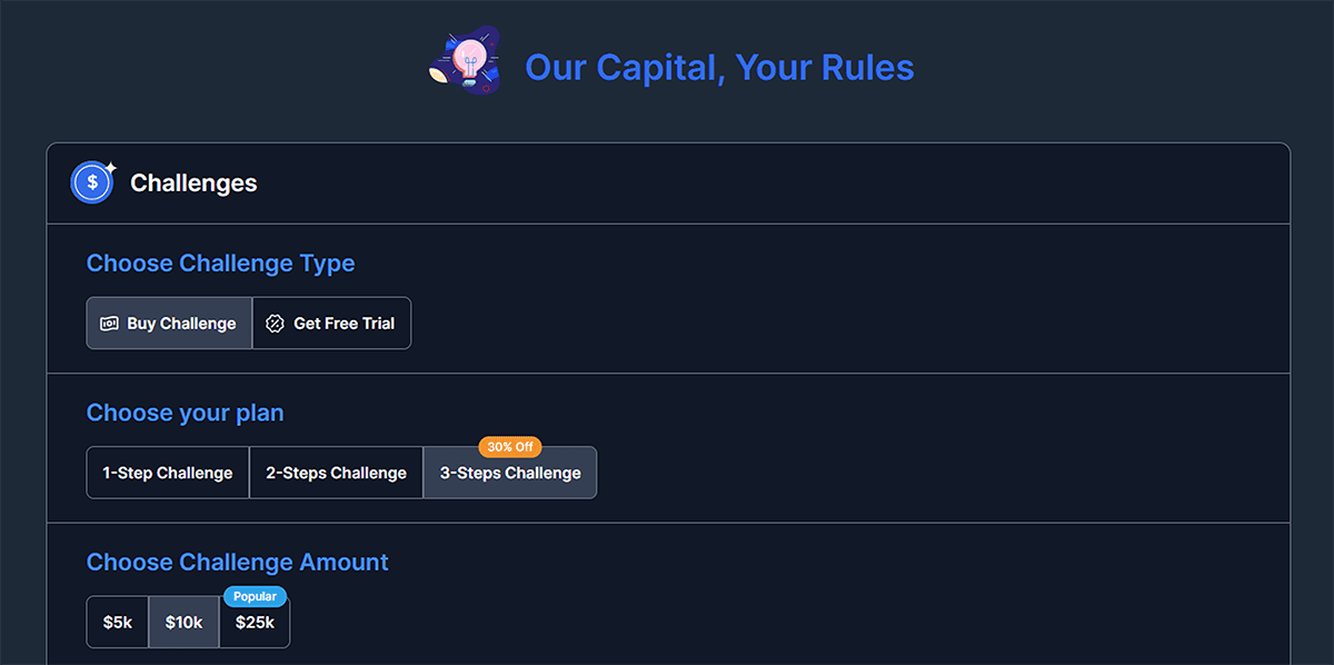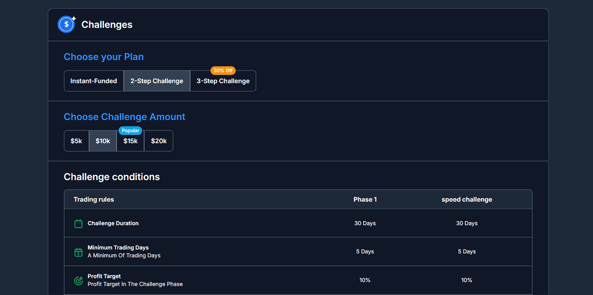 UI pop-up from a prop trading platform offering a 'Challenge Keeper' extension – prompting a forex trader to extend their challenge duration for a fee – illustrating an engagement tool to boost trader retention.