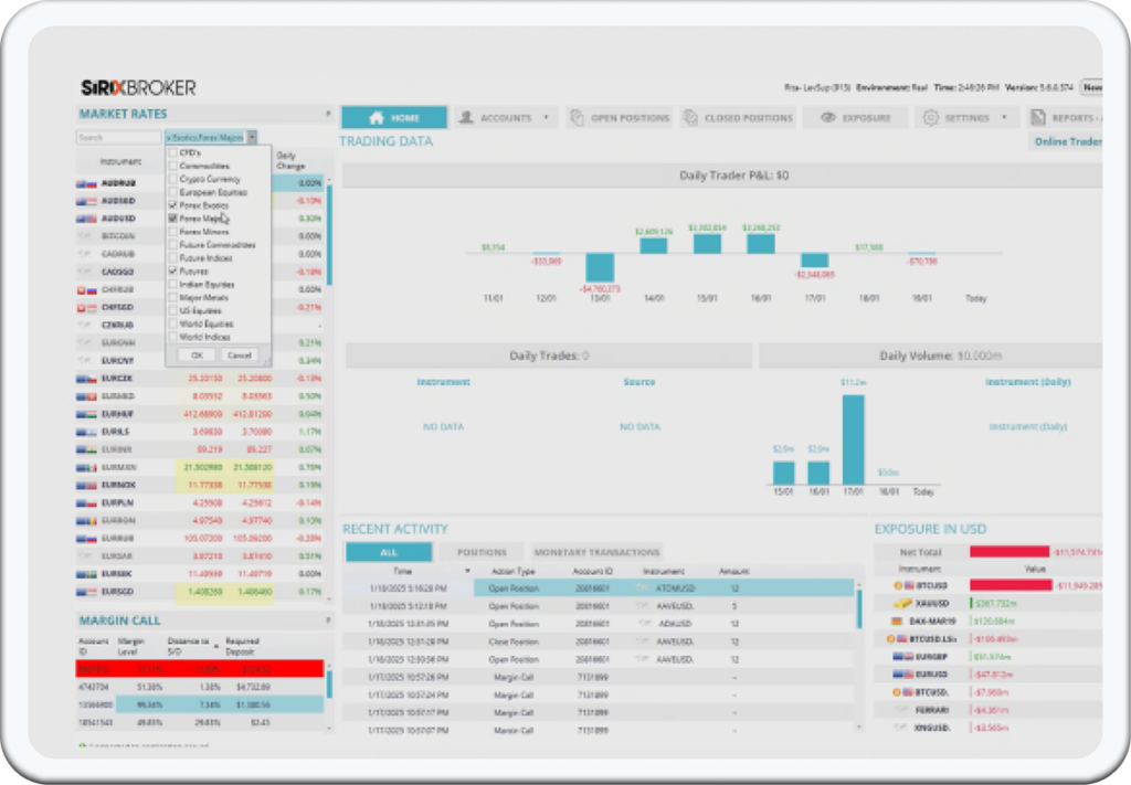 CRM, Broker Portal, Affiliate & IB’s, Risk Managemnt, and more.