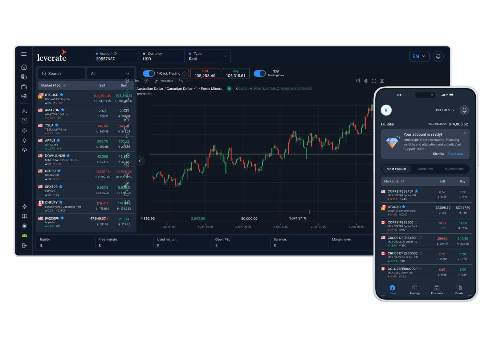 Launch your brokerage with MT5 or MT4. Backed by Leverate’s proven infrastructure.