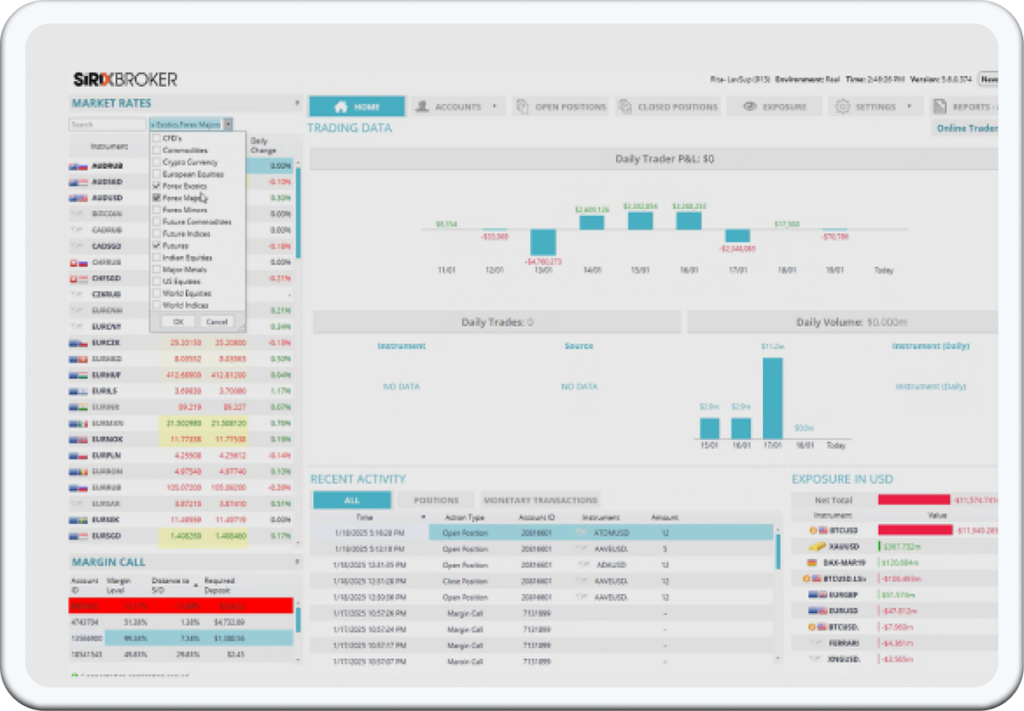 CRM, Broker Portal, Affiliate & IB’s, Risk Managemnt, and more.